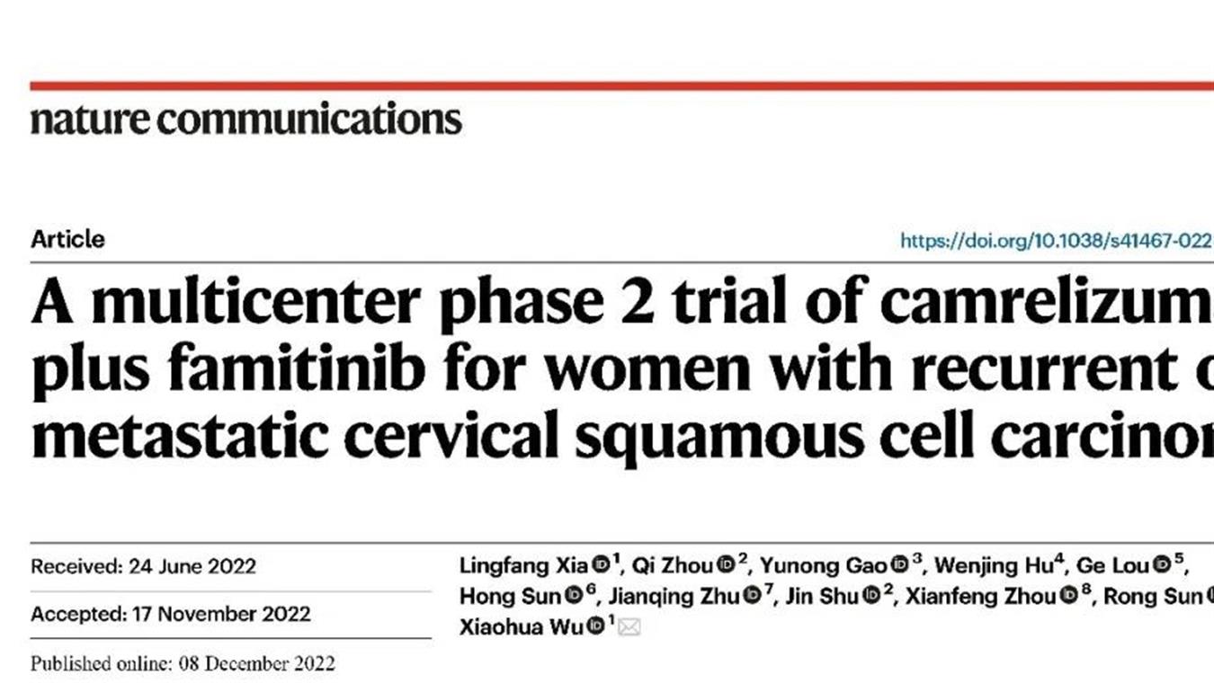 EVO创新药卡瑞利珠单抗联合法米替尼用于复发或转移性宫颈癌研究结果荣登JCO